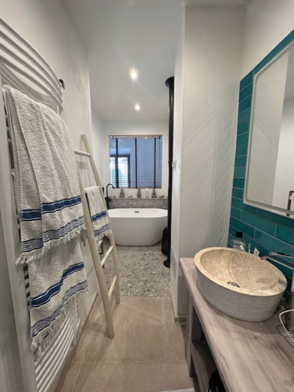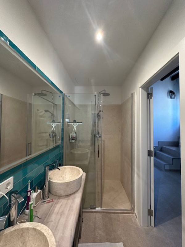 Cuenta con dos dormitorios dobles, un baño completo y dos aseos (uno en cada planta). Dispone de estufa de leña y sistema de aire acondicionado con bomba de calor.