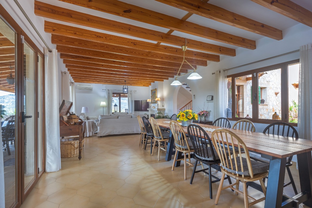La urbanización Sa Coma pertenece al municipio de Bunyola y está situada a unos 10 minutos en coche del centro del pueblo. Es una zona muy tranquila y con todos los servicios propios de la zona. La casa está situada en un solar de unos 2500 m2 y en dos plantas posee 6 dormitorios dobles y 4 baños completos. Tiene un enorme salón comedor que conecta con una gran terraza donde se disfruta de unas buenas vistas a la piscina y a todo el terreno. La barbacoa tradicional es ideal para disfrutar de las comidas al fresco y todas las terrazas alrededor de la casa proveen a esta de mucho espacio exterior. La zona de Sa Coma también es ideal para los ciclistas para empezar sus salidas. Cabe destacar que la casa tiene la licencia para el alquiler vacacional.