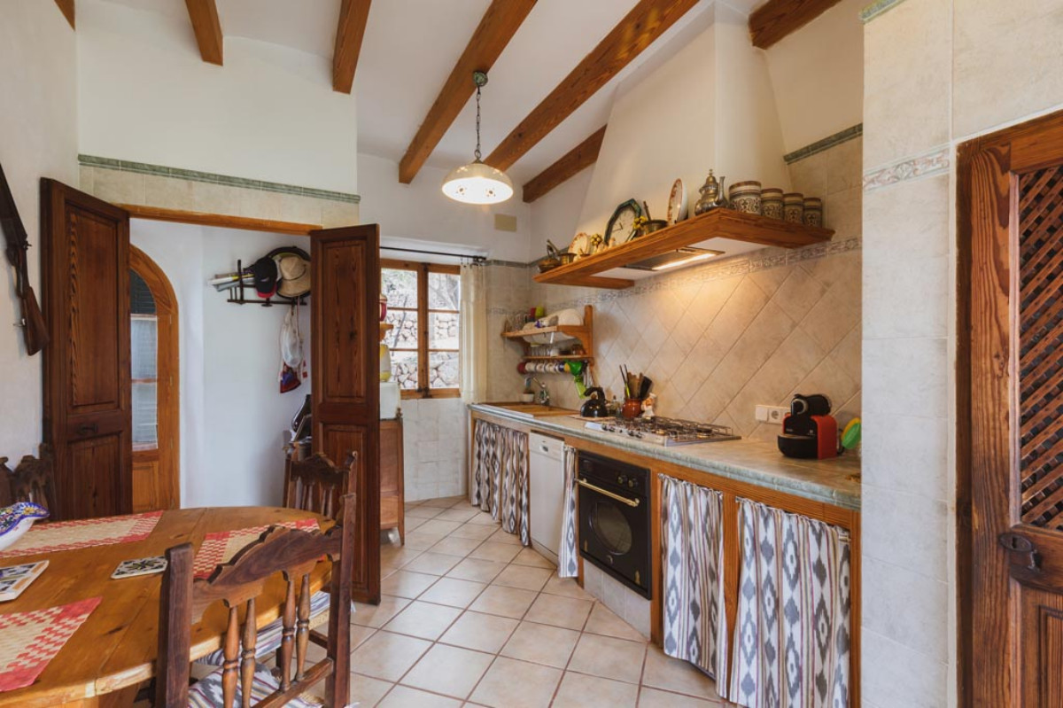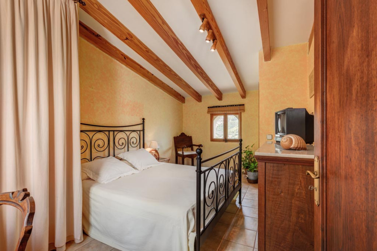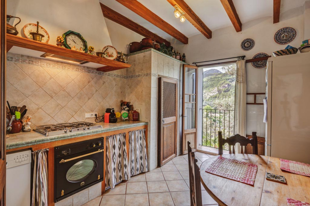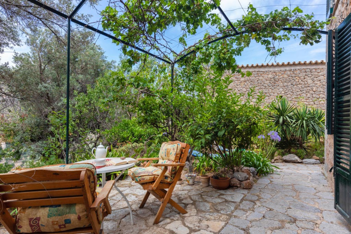 Esta acogedora casa con jardín se encuentra a escasos minutos a pie del centro de Deià y a otros pocos en vehículo de la Cala, a la que también se puede acceder andando. Desde el jardín se accede a la entrada que actúa de distribuidor de la planta baja, donde hay dos dormitorios y un baño. El primer piso presenta un salón-comedor con salida a la terraza, lugar ideal para disfrutar de agradables momentos contemplando el mar y las montañas; cocina y salida a la parte trasera de la casa. La planta superior alberga otros dos dormitorios y un baño. Todas las estancias ofrecen varias ventanas que imprimen mucha luz a la casa.