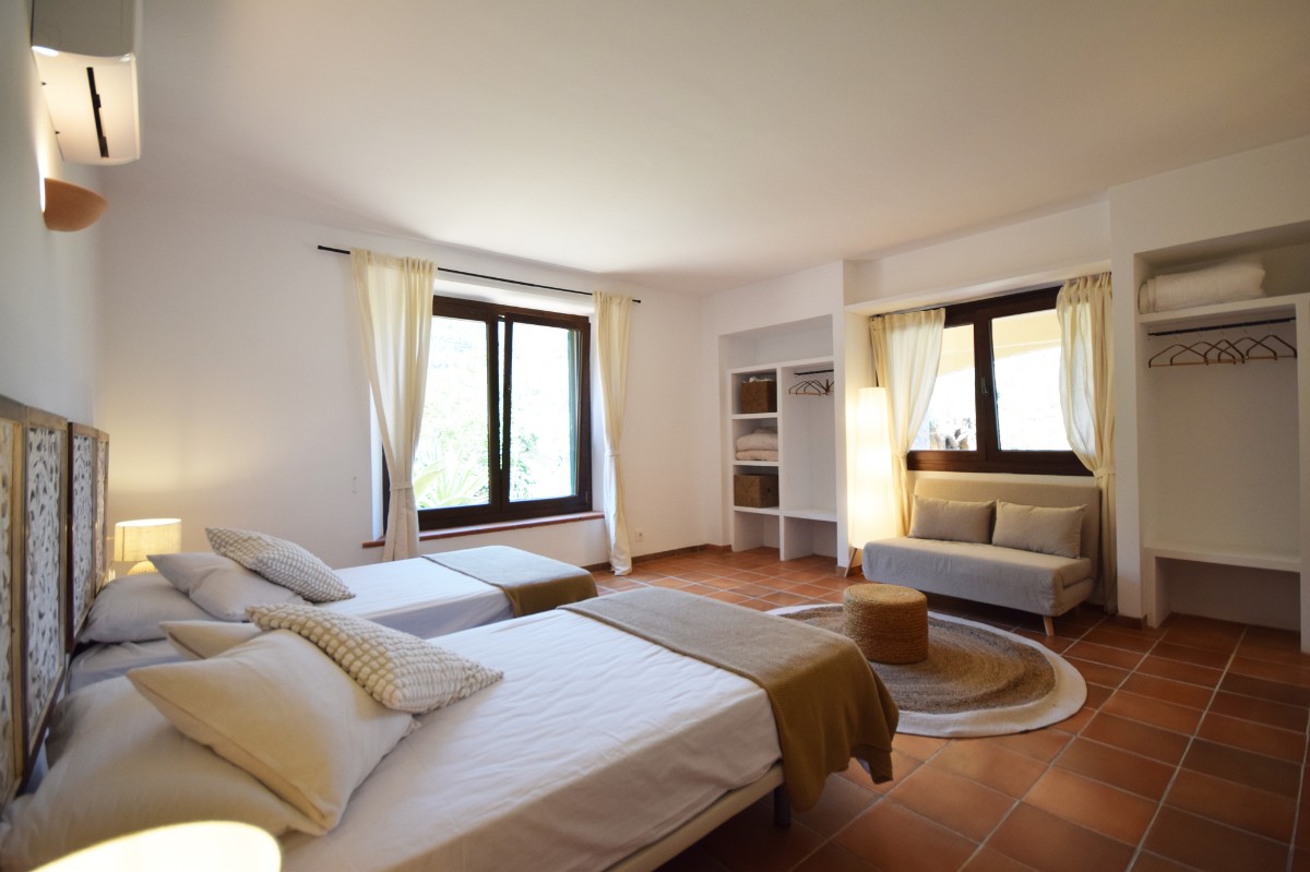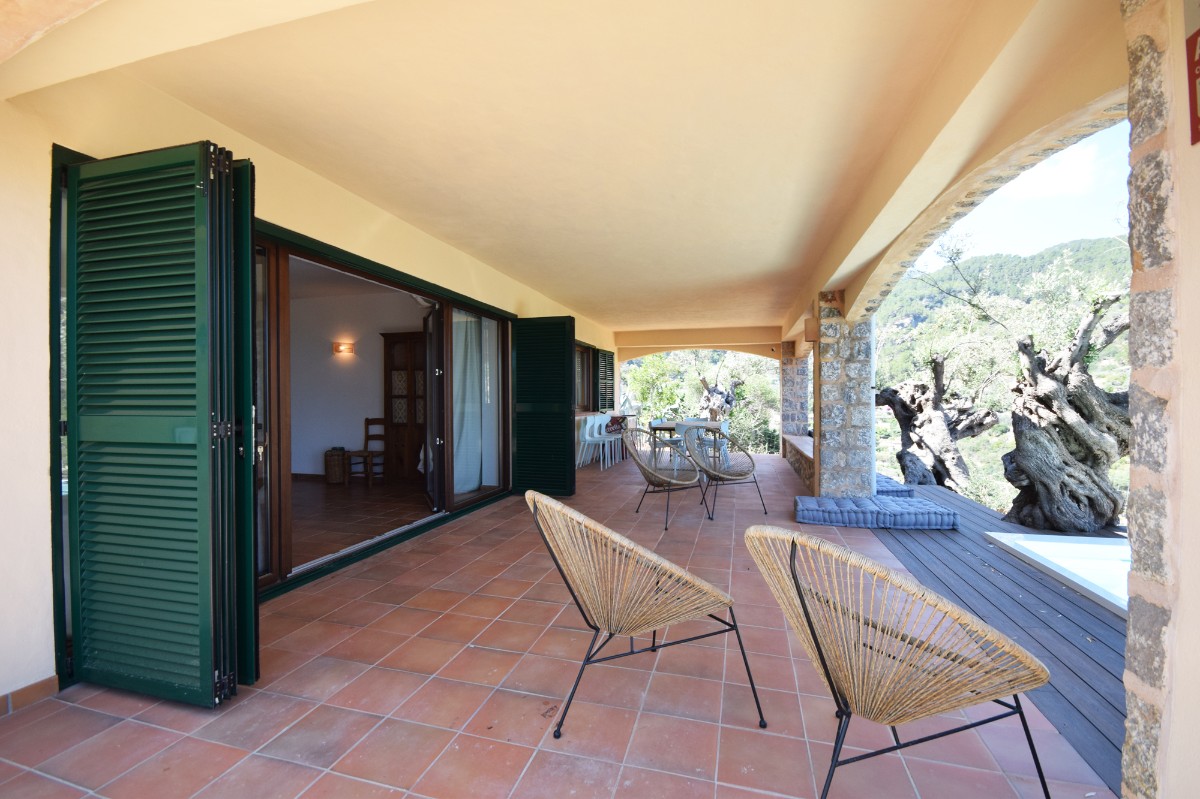 A pocos metros del pueblo de Deià encontramos esta cómoda casa con espectaculares vistas al mar y al pueblo. Situada en medio de un gran terreno con olivar, la propiedad ofrece tranquilidad, vistas y confort. Ha sido recientemente renovada con sus tres dormitorios dobles, todos con baños en suite, moderna cocina, amplias terrazas y con una pequeña piscina. Se ofrece en alquiler, pero con estancia mínima de un mes. Disponibilidad desde ya. . Para más información por favor consultar.