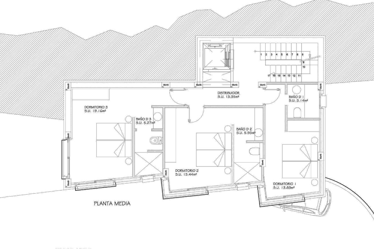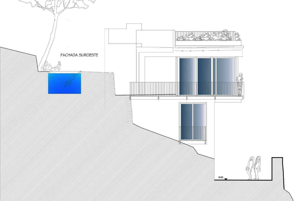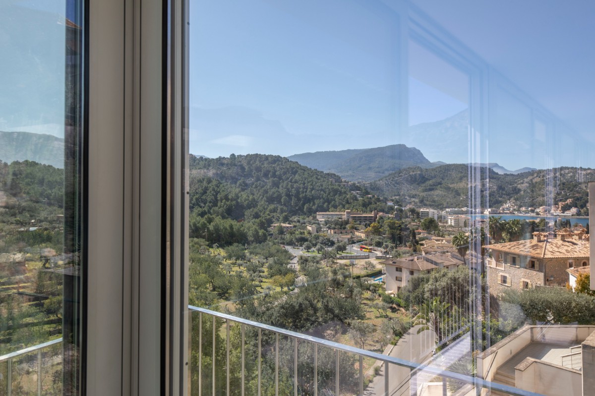 Vivienda unifamiliar compuesta de dos plantas , cubierta panorámica , planta garaje, jardín y piscina en urbanización Atalaya del Port de Soller. Destaca por su singular diseño y funcionalidad y por su ubicación próxima a la playa y, a la vez, en zona apartada y tranquila. La superficie construida se distribuye en: planta superior de 102,12 m2 construidos con cocina, aseo, comedor y sala de estar; se accede a una terraza exterior con porche de 32,5 m2. Destacan los amplios ventanales con vistas, al este a Sa Figuera y al sur y al oeste a las montañas y al Puerto de Sóller. Planta inferior de 97,93 m2 construidos con tres amplias habitaciones, cada una de ellas con baño en suite. Destacan en todas ellas las vistas a Sa Figuera y al Puerto de Sóller. Planta sótano de 90,75 m2 construidos con garaje para dos coches, coladuría, sala de máquinas , y acceso principal al edificio que conduce a las escaleras abiertas y al ascensor. Existe otra plaza de garaje exterior. La superficie de la terraza panorámica es de 100 m2 lo que representa un total de 290,80 m2 de construcción cerrada y 147 de terrazas abiertas. La superficie de la parcela es de 487 m2, con una acusada pendiente, y con acceso desde la calle Bélgica. La parcela dispone de los servicios de electricidad, alcantarillado, red de agua potable, teléfono y fibra óptica. En la zona superior de la parcela, entre el nivel de la planta superior y la cubierta panorámica, se sitúa una piscina de 12,5 m2 de lámina de agua, con una zona de solárium y jardín vegetal . Toda esta zona cuenta con excelentes vistas a las montañas y al Puerto de Sóller. El resto del solar está dedicado a jardín mediterráneo, el cual está dispuesto en bancales y escaleras de piedra natural. El jardín se encuentra ya plantado. Las instalaciones más relevantes son calefacción por suelo radiante y aire acondicionado en toda la vivienda ; descalcificador general ; cortineros exteriores automatizados ; domótica general y ascensor. Los acabados son de calidad alta: carpintería exterior de aluminio anodizado, acristalamiento con cámara ; carpintería interior ( incluida cocina ) y suelos de roble rustico en las habitaciones; baldosas porcelánicas en suelos y alicatados de calidad Porcelanosa; sanitarios y griferías de diseño.