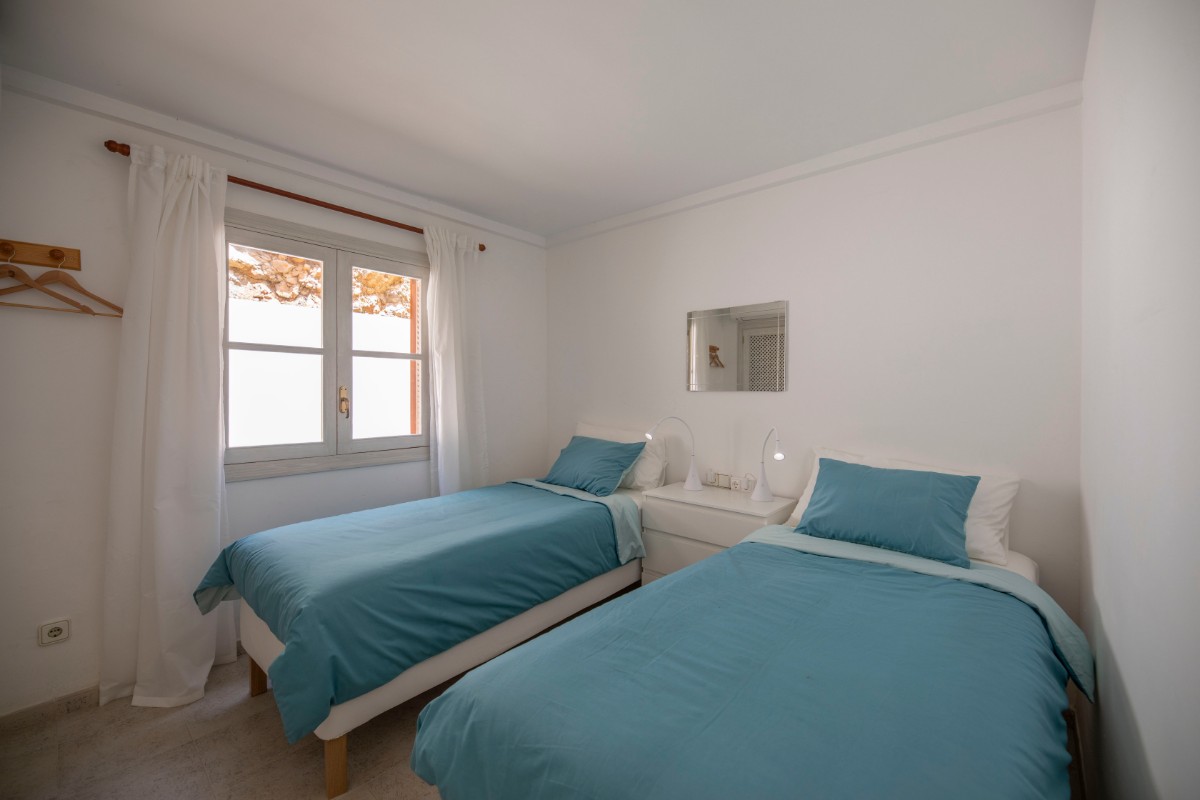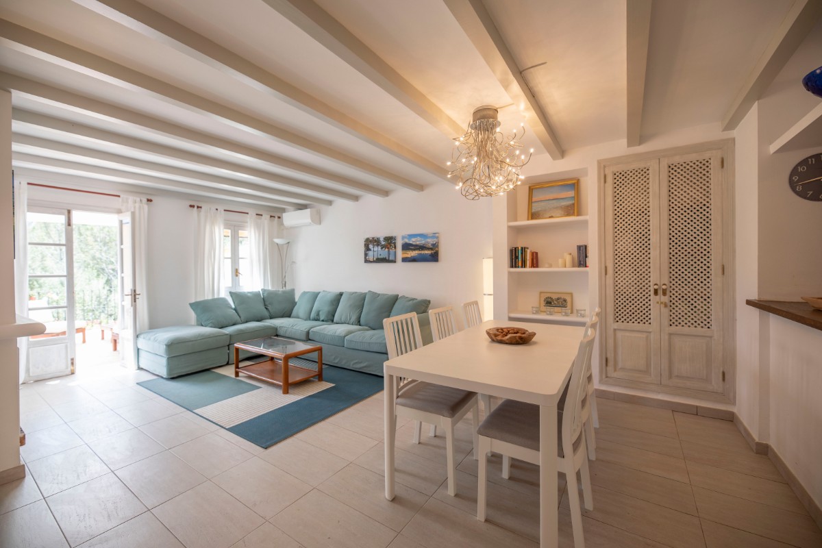 Uno de los grandes atractivos de la propiedad es la amplia terraza orientada al sureste, accesible tanto desde el salón como desde uno de los dormitorios. Disfruta de agradables vistas a la montaña y sol durante todo el año, lo que la convierte en el lugar perfecto para relajarse o disfrutar de comidas al aire libre. Desde la terraza, unas escaleras conducen a un sendero que lleva a la calle residencial inferior, ofreciendo un acceso directo a la playa y al puerto.