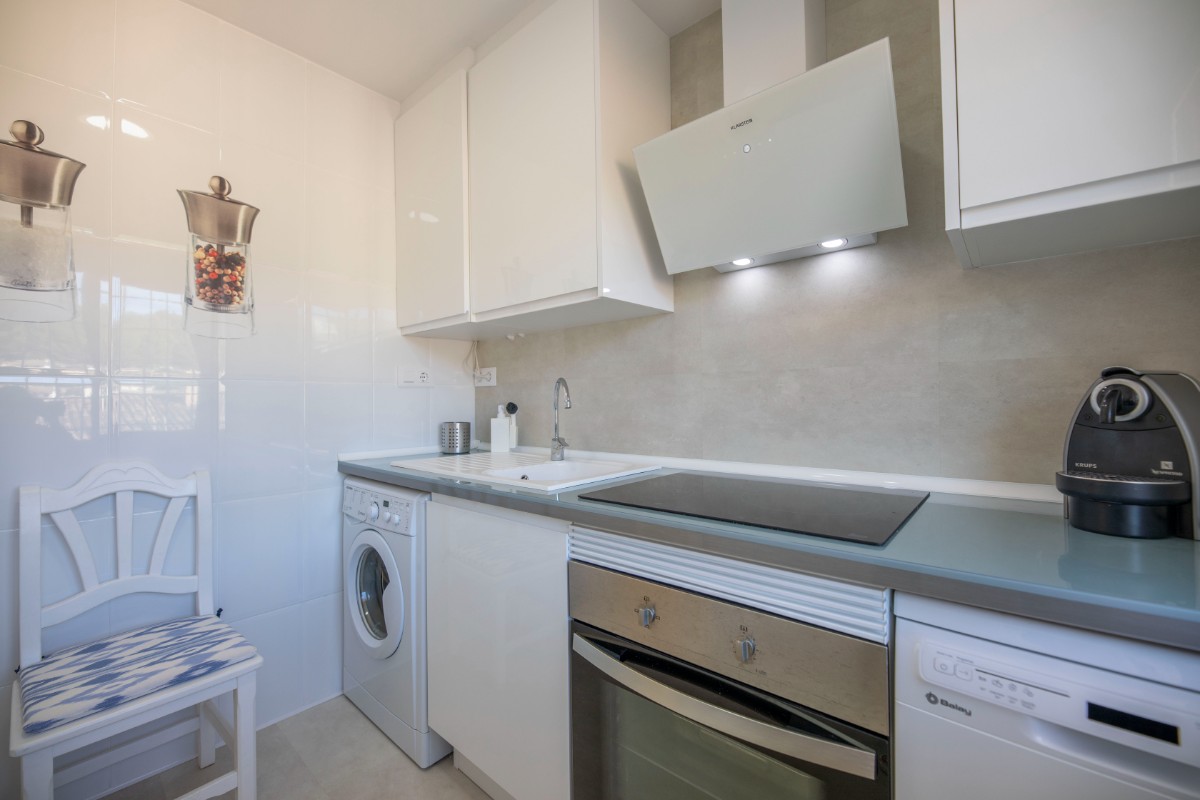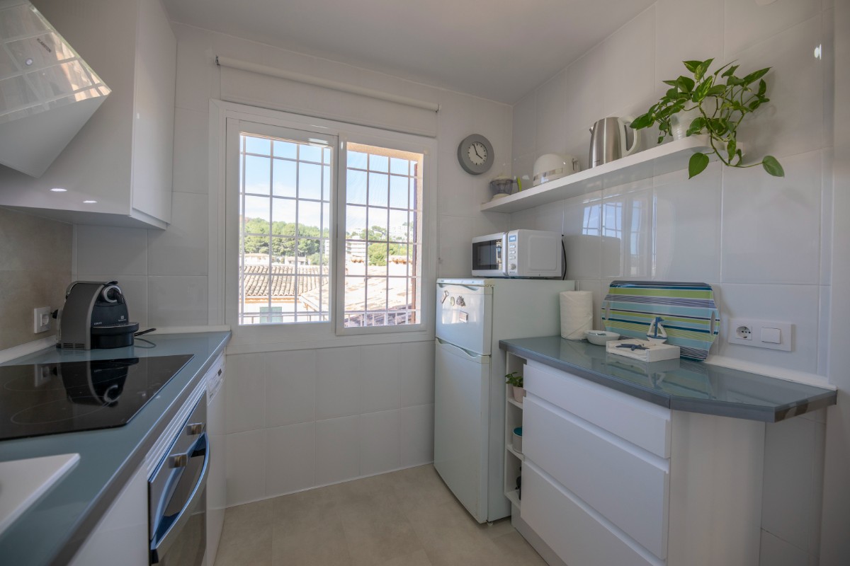 Este moderno piso reformado impresiona por su ubicación, a sólo unos pasos de la playa de Port de Sóller. Una vez que haya subido las escaleras hasta el 4º piso se verá recompensado con una fantástica vista de la finca histórica del Hotel Es Port, así como de las montañas circundantes de la Tramuntana. El piso tiene un dormitorio con una cama doble de 1,50 x 2,00 m. La cocina está muy bien equipada incluyendo lavadora y lavavajillas. El baño tiene ducha. El salón es luminoso y acogedor con WIFI y TV y da directamente a la terraza cubierta, probablemente el espacio más utilizado en este pequeño piso. Dispone de una espaciosa terraza para disfrutar del desayuno o simplemente completar la noche con una copa de vino. Hay aire acondicionado en el salón y ventilador de techo en el dormitorio. Este piso es una base perfecta tanto para veraneantes en la playa como para excursionistas.