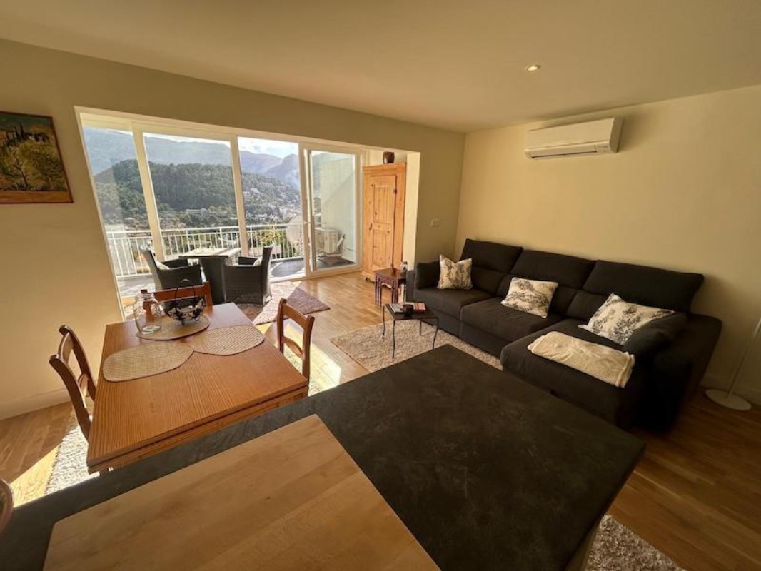 Encantador estudio con vistas panorámicas al Puerto de Sóller y la montaña. Este espacioso piso cuenta con aprox 56 m² muy bien aprovechados. Está distribuido en un amplio salón-comedor y cocina, así como una zona abierta que cumple como función de dormitorio. Un espacio diáfano y acogedor en el corazón de la Sierra de Tramuntana. Además, cuenta con un espacioso baño totalmente equipado y con armarios importados y aire acondicionado. Destaca por su terraza de unos 12m2 con un toldo eléctrico, en la que podrá disfrutar de las impresionantes vistas y sol.