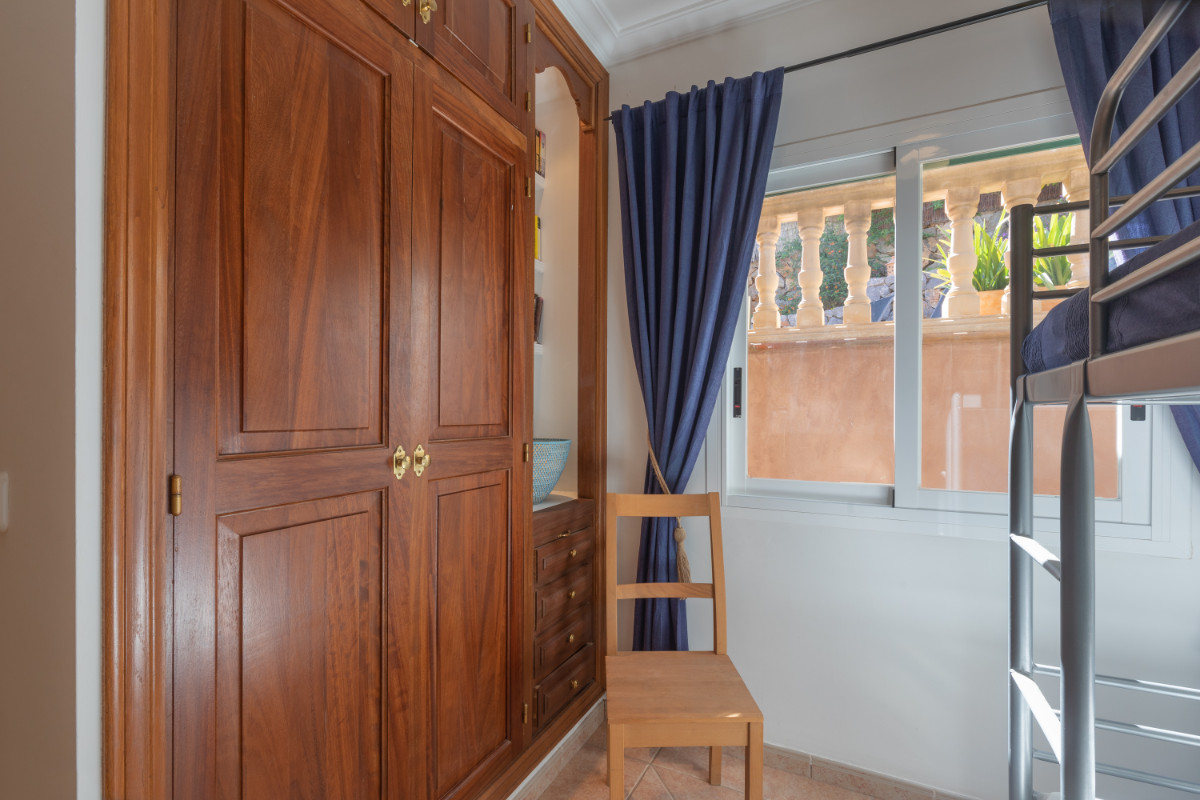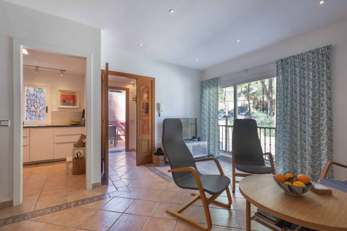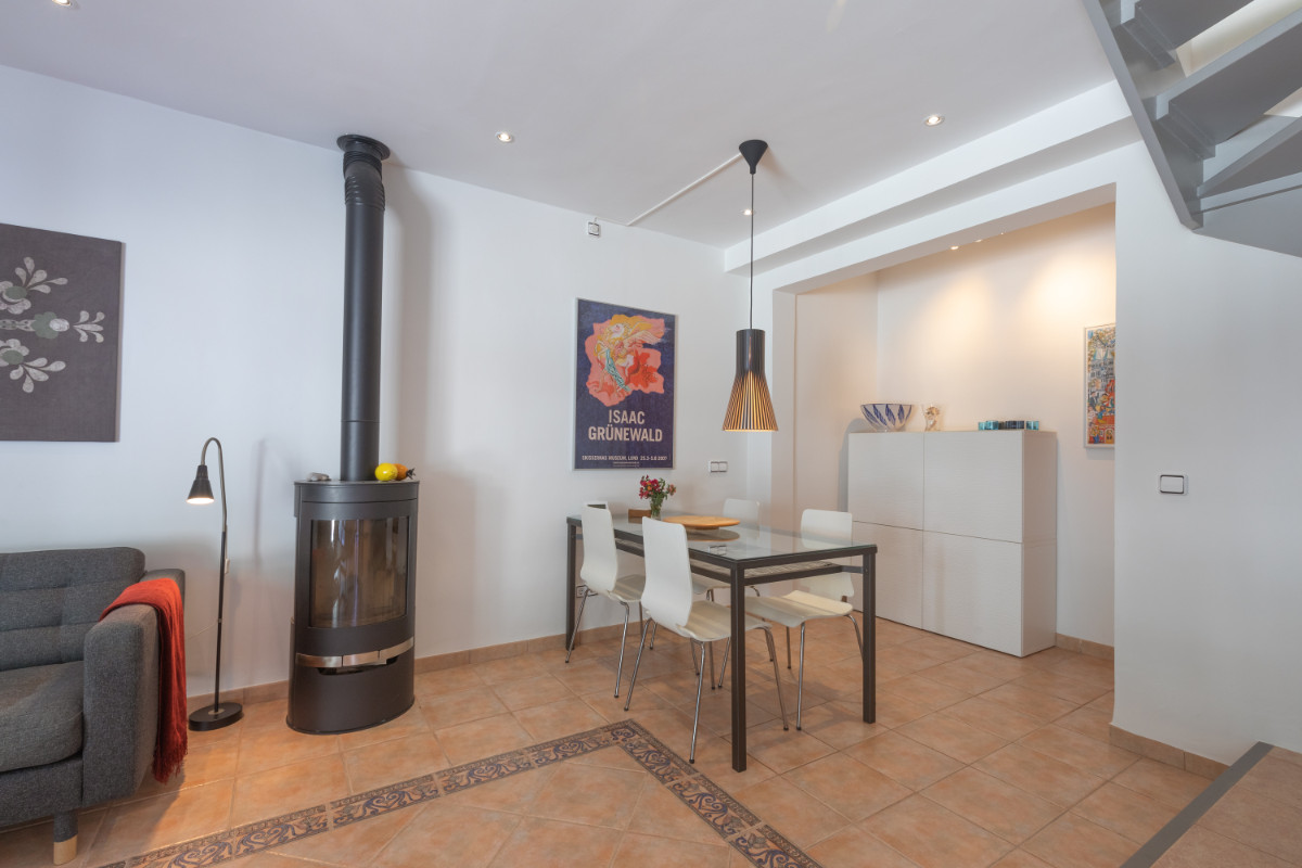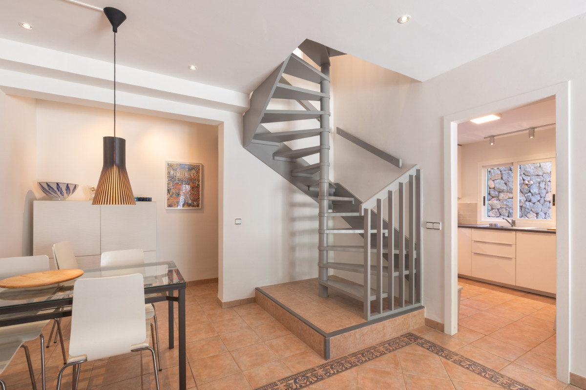 A pocos metros del barrio pescador del Port de Sóller encontramos este cómodo apartamento. A nivel de calle posee un enorme trastero con lavandería, ideal para dejar las bicis o la tabla de paddle surf. La vivienda se distribuye en dos plantas. En su planta baja posee la cocina, sala de estar con chimenea y un baño. Arriba, las tres habitaciones y otro baño. En su parte posterior se encuentra la espaciosa terraza, que, en distintos niveles, ofrece muchos rincones donde relajarse, cenar y disfrutar de unas vistas despejadas al mar. A destacar el buen estado en que se encuentra la vivienda y que está equipada con A/C frío/calor, además de tener una estufa de leña en el salón.