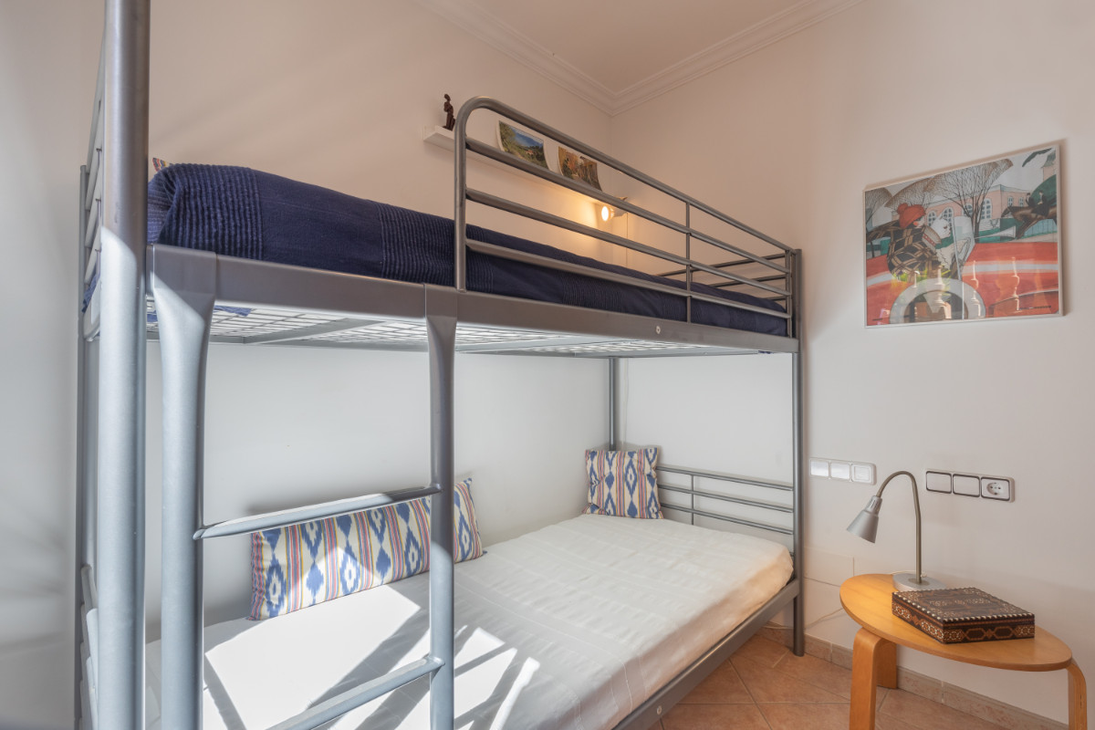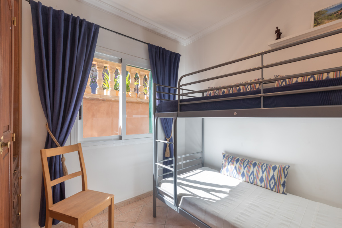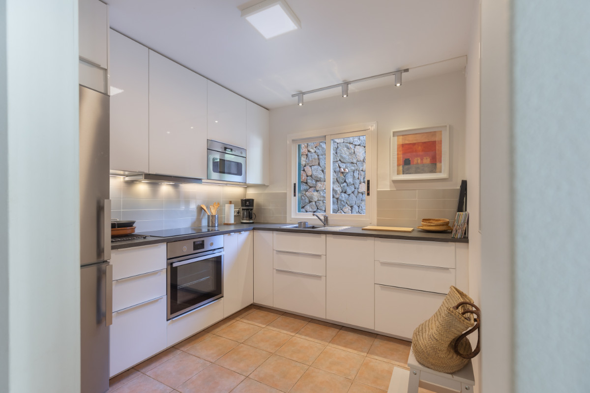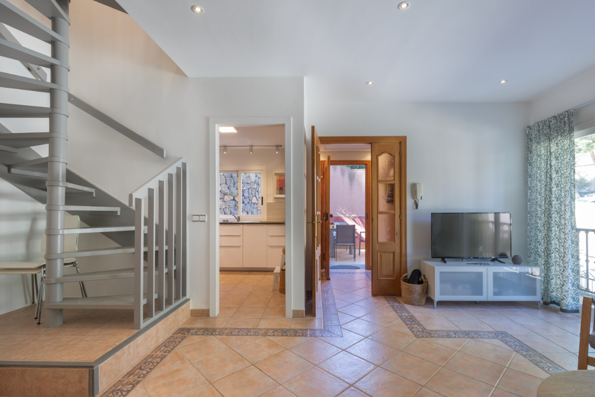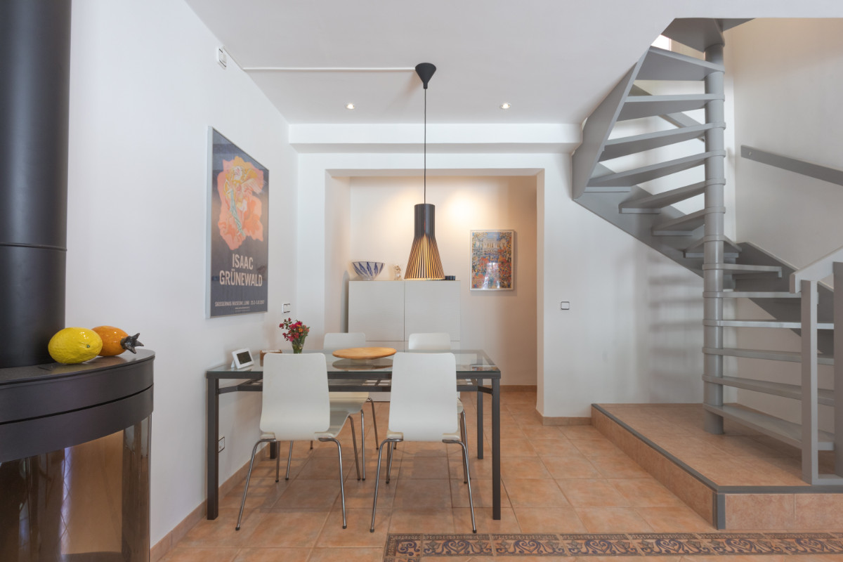A pocos metros del barrio pescador del Port de Sóller encontramos este cómodo apartamento. A nivel de calle posee un enorme trastero con lavandería, ideal para dejar las bicis o la tabla de paddle surf. La vivienda se distribuye en dos plantas. En su planta baja posee la cocina, sala de estar con chimenea y un baño. Arriba, las tres habitaciones y otro baño. En su parte posterior se encuentra la espaciosa terraza, que, en distintos niveles, ofrece muchos rincones donde relajarse, cenar y disfrutar de unas vistas despejadas al mar. A destacar el buen estado en que se encuentra la vivienda y que está equipada con A/C frío/calor, además de tener una estufa de leña en el salón.
