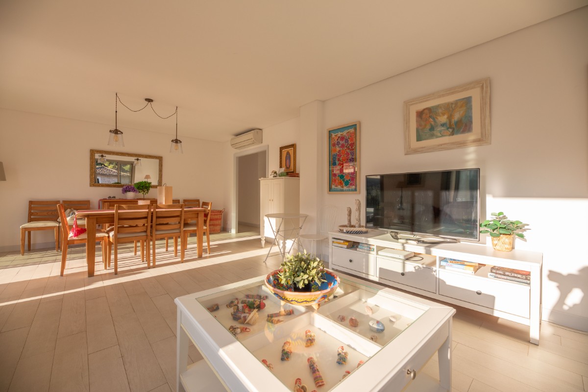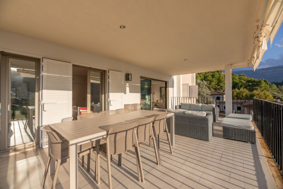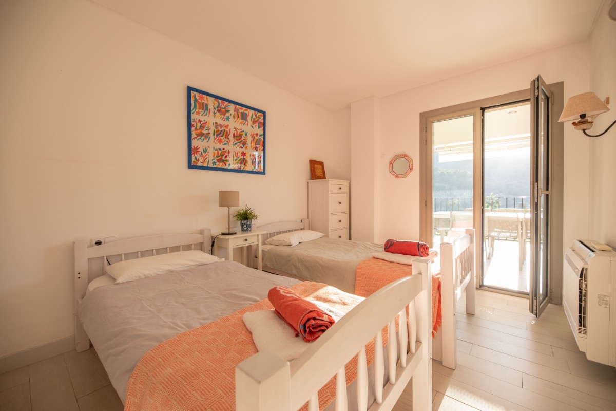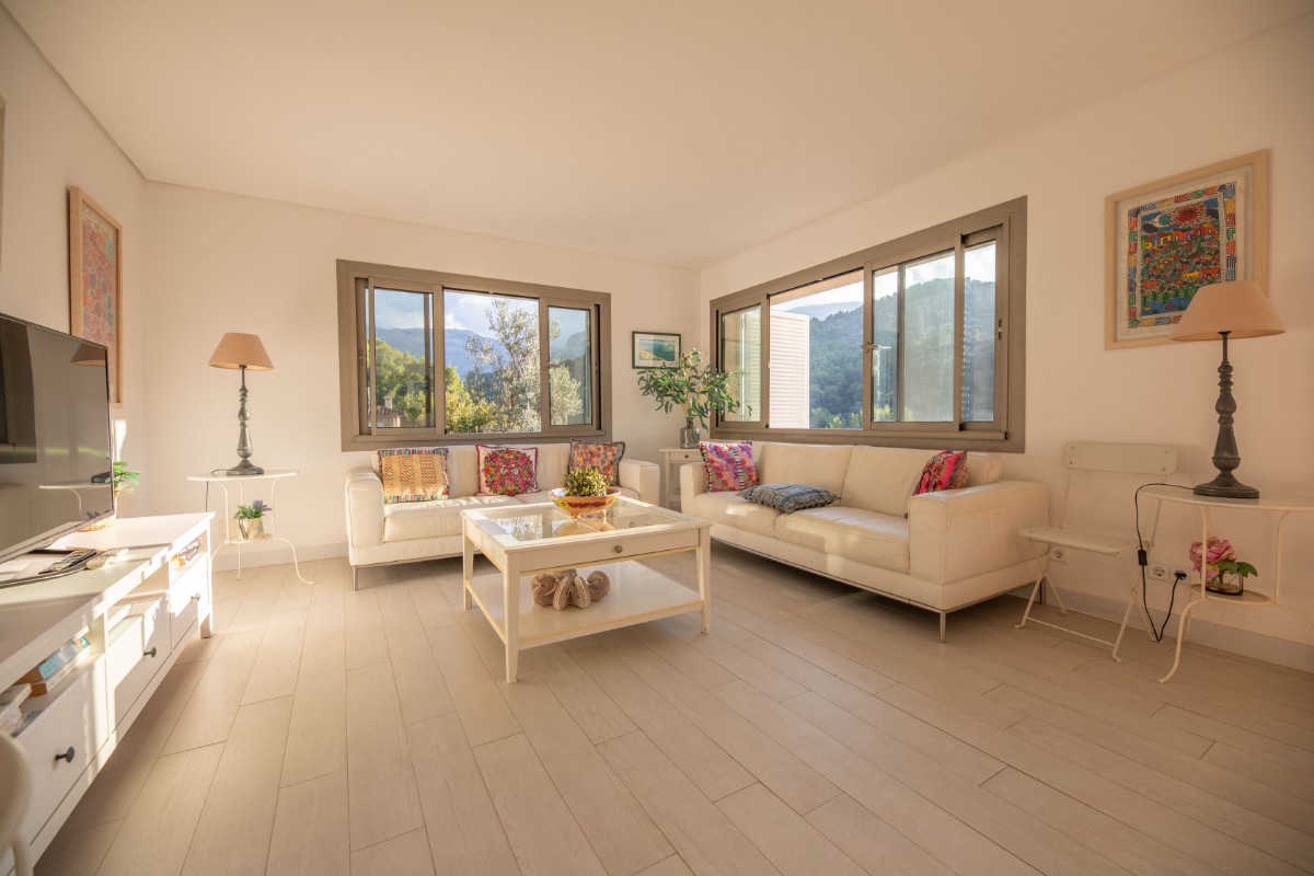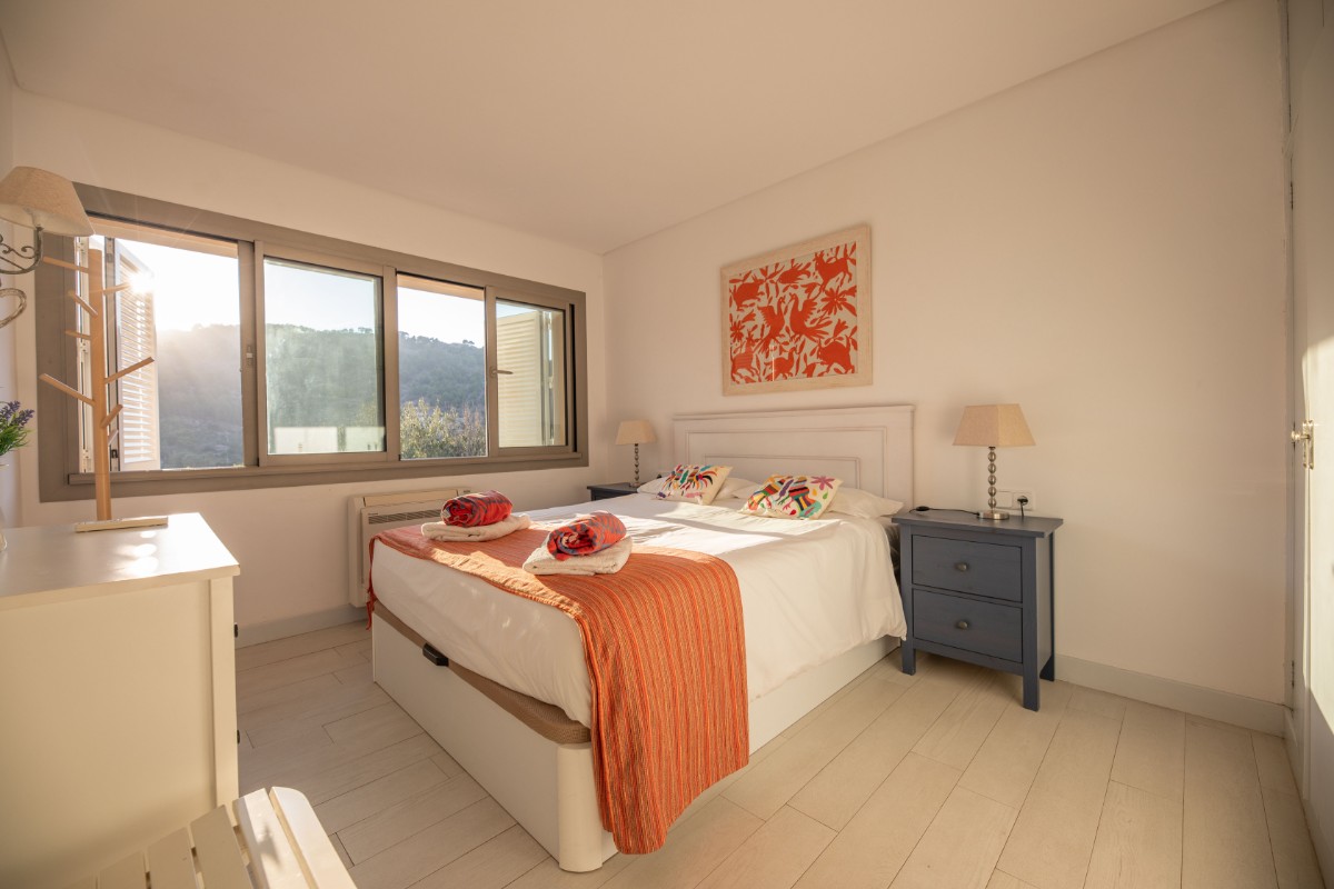 El apartamento está situado a solo 200 metros de la primera línea de Port de Soller y su playa de arena. El edificio tiene siete pisos que comparten una gran parcela con mucho estacionamiento y un área de piscina de buen tamaño. Ubicado en el segundo piso, disfruta de una gran terraza cubierta donde pasar la mayor parte del tiempo. Las bonitas vistas a las montañas se pueden ver desde la terraza y la sala de estar que es muy luminosa y está bien equipada. Hay tres habitaciones dobles con camas dobles y una habitacion más con camas individuales. Hay tres baños, dos de ellos en suite. Uno en el dormitorio principal y el otro pequeño en una de las habitaciones dobles. La cocina está totalmente equipada y tiene acceso a una terraza trasera donde hay una lavadora y una secadora. Hay aire acondicionado frío y caliente en todo el apartamento y WIFI gratuito disponible. El ascensor, la piscina comunitaria y el parking hacen que la propiedad sea muy confortable.