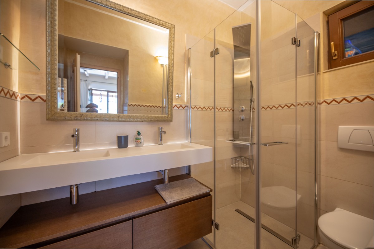 Situado en la parte alta del Port de Sóller, orientado al sur, esta pequeña joya ofrece el lugar perfecto para relajarse y disfrutar de lo mejor de Mallorca. El piso ofrece una cocina abierta , comedor y sala de estar con salida a la terraza. El dormitorio tiene una cama doble de 180x200 y un moderno cuarto de baño con ducha. Lo más probable es que uno esté disfrutando de todo el día en la generosa zona de terraza. Aquí hay una zona cubierta con protección contra el exceso de sol y una zona ajardinada con tumbonas - perfecto para alcanzar un libro y tomar un baño de sol. Para refrescarse la comunidad ofrece una enorme piscina con zona de solarium. Se accede a ella por una pequeña barrera directamente desde la terraza del apartamento. Por la noche se puede disfrutar de la vista y el juego de colores de las montañas de color púrpura con un bebida "sun downer" . Estas son las mejores vacaciones. Tenga en cuenta que hay algunos pasos hasta la comunidad. Hay una plaza de aparcamiento disponible. ETVPL/14031 / ESFCTU00000702800037551800000000000000000ETVPL/140313,