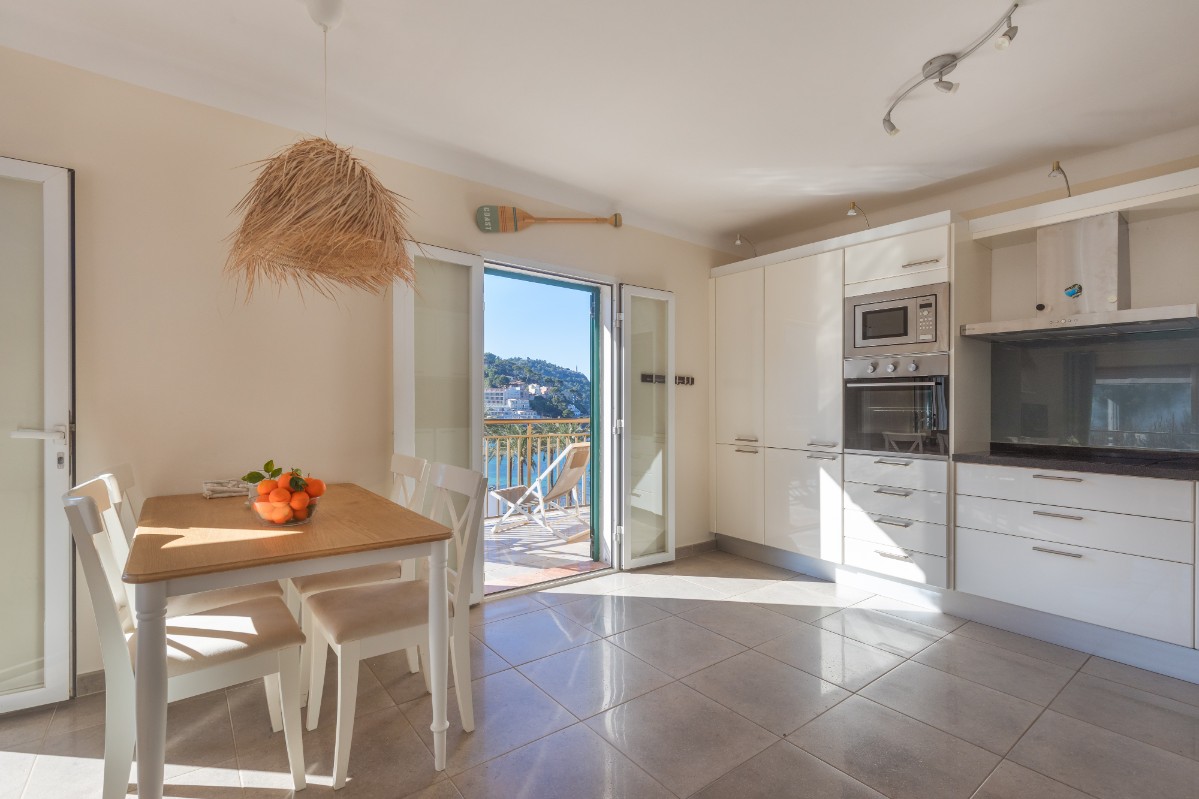 Imagina despertarte con el sonido de las olas rompiendo suavemente en la orilla, a solo unos pasos de tu apartamento frente al mar en Port de Sóller. Esta impresionante propiedad está situada en la última planta, con ascensor, y ofrece unas vistas impresionantes de las montañas circundantes y del pintoresco puerto. El dormitorio principal, con su acogedora cama doble y sus encantadoras vistas a la montaña, es el refugio perfecto después de un día de sol y mar. El segundo dormitorio ofrece un amplio espacio para dos camas individuales, ideal para familias o invitados. Con dos baños con modernas duchas, no hay que preocuparse por las colas en las prisas matutinas. El salón-comedor se abre a una encantadora terraza, perfecta para disfrutar de un baño de sol o de una romántica cena al aire libre. La cocina, totalmente equipada, es el sueño de cualquier chef, ya que hace que cocinar sea un placer. Además, con el satélite alemán instalado, el entretenimiento está asegurado. Sin olvidar que esta joya cuenta con una licencia de alquiler turístico y reservas existentes, lo que la convierte en una excelente oportunidad de inversión o en su próxima casa de ensueño junto al mar.