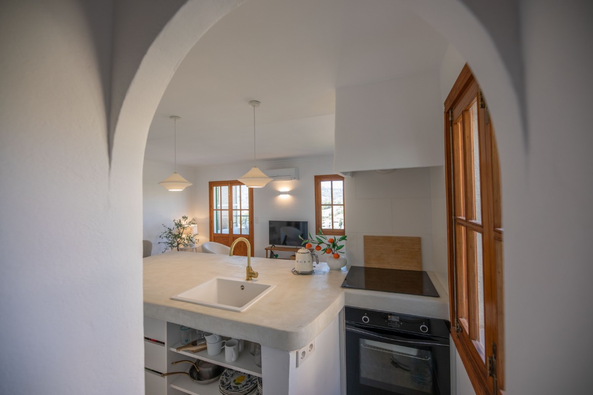 Este moderno apartamento ofrece un toque encantador con sus espacios llenos de luz y su ambiente soleado, lo que lo convierte en un espacio de vida encantador. Con un dormitorio doble que ofrece espléndidas vistas de las montañas, un baño grande con ducha, una sala interior diseñada para usos múltiples y un cómodo aseo de invitados, esta unidad es a la vez práctica y visualmente atractiva. La cocina abierta añade un toque contemporáneo al interior, mientras que la terraza, orientada al sur, ofrece impresionantes vistas al Port de Sóller, creando un entorno sereno para la relajación y el entretenimiento. Situado en una pequeña comunidad, este apartamento ofrece una experiencia de vida íntima que combina las comodidades modernas con un pintoresco entorno portuario.