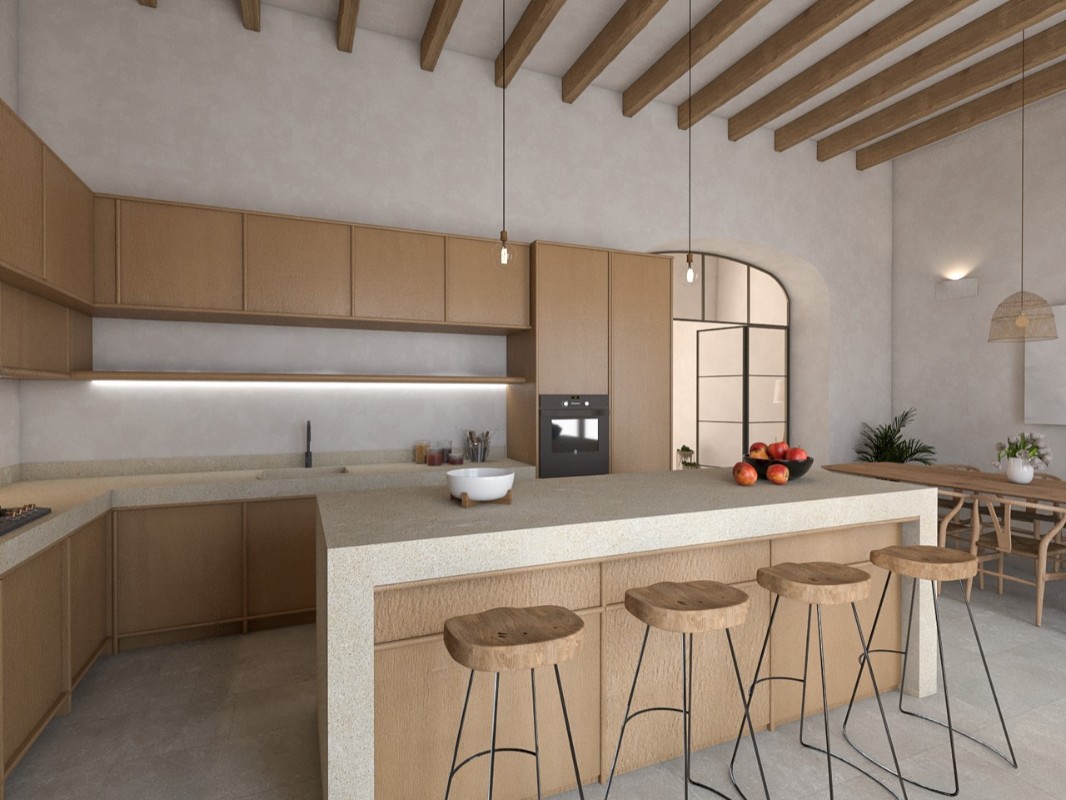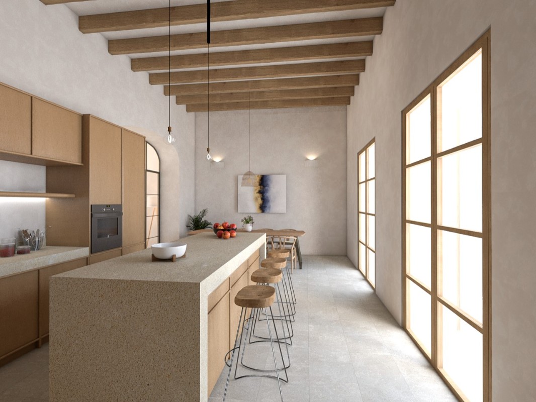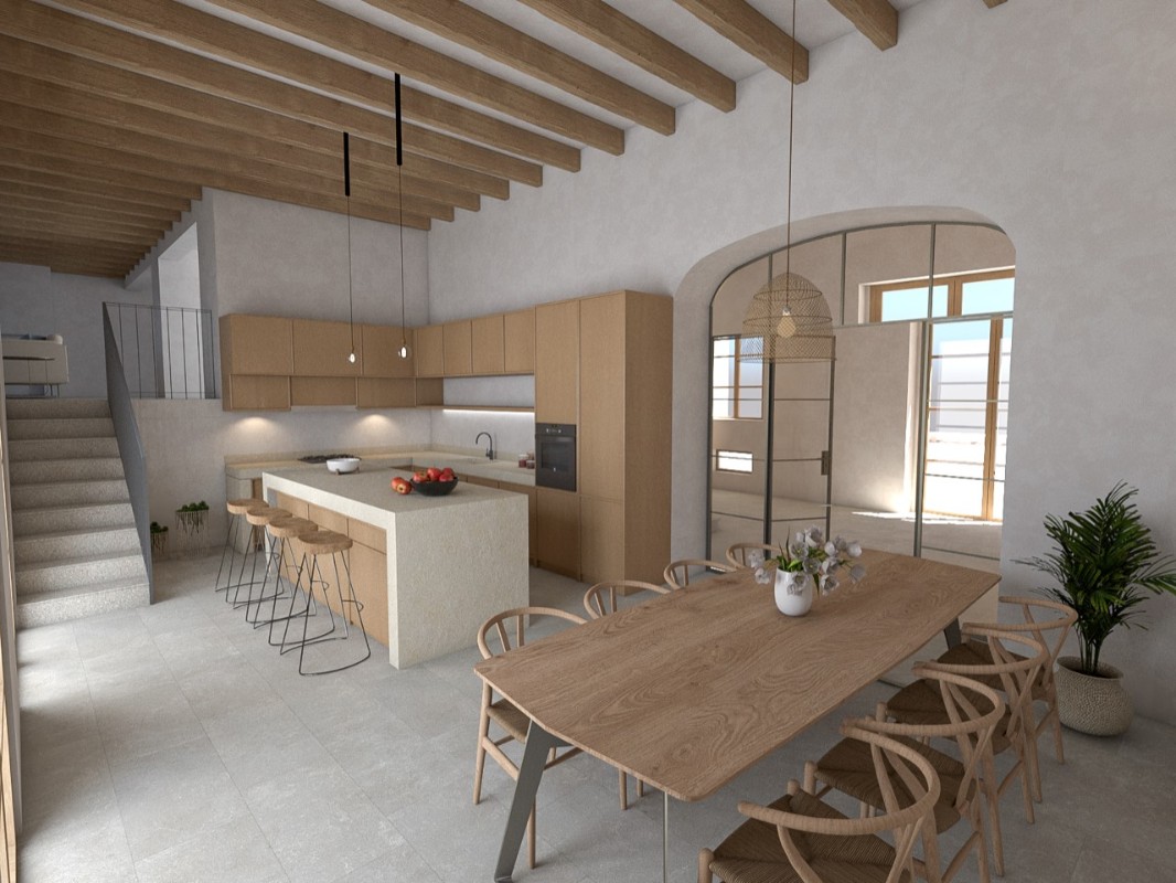 Esta magnífica casa de pueblo mallorquina se vende con licencia para convertirla en una vivienda totalmente equipada con acabados contemporáneos y eficiencias de una casa a estrenar. El increíble jardín exuberante con grandes arboles y palmeras se destaca en tamaño y le permite una enorme privacidad, difícilmente alcanzable para una casa de pueblo. Además tiene un camino de entrada a la propiedad con aparcamiento para varios coches directamente bajo cubierta y con acceso directo a la casa. Mucho más cómodo no puede llegar a ser en la ciudad de Sóller. La casa en sí se distribuye en tres plantas, mientras que la cocina y sala de estar y uno de los dormitorios están conectados bien hacia el jardín y terrazas. En la primera planta se encuentran los dormitorios dobles, todos en suite y con magníficas vistas a las montañas de los alrededores. La suite principal se supone que está en toda la planta superior con vestidor y baño y las vistas desde las 5 ventanas son inmaculadas. Esta es una gran oportunidad en uno de los lugares más deseados de Sóller.