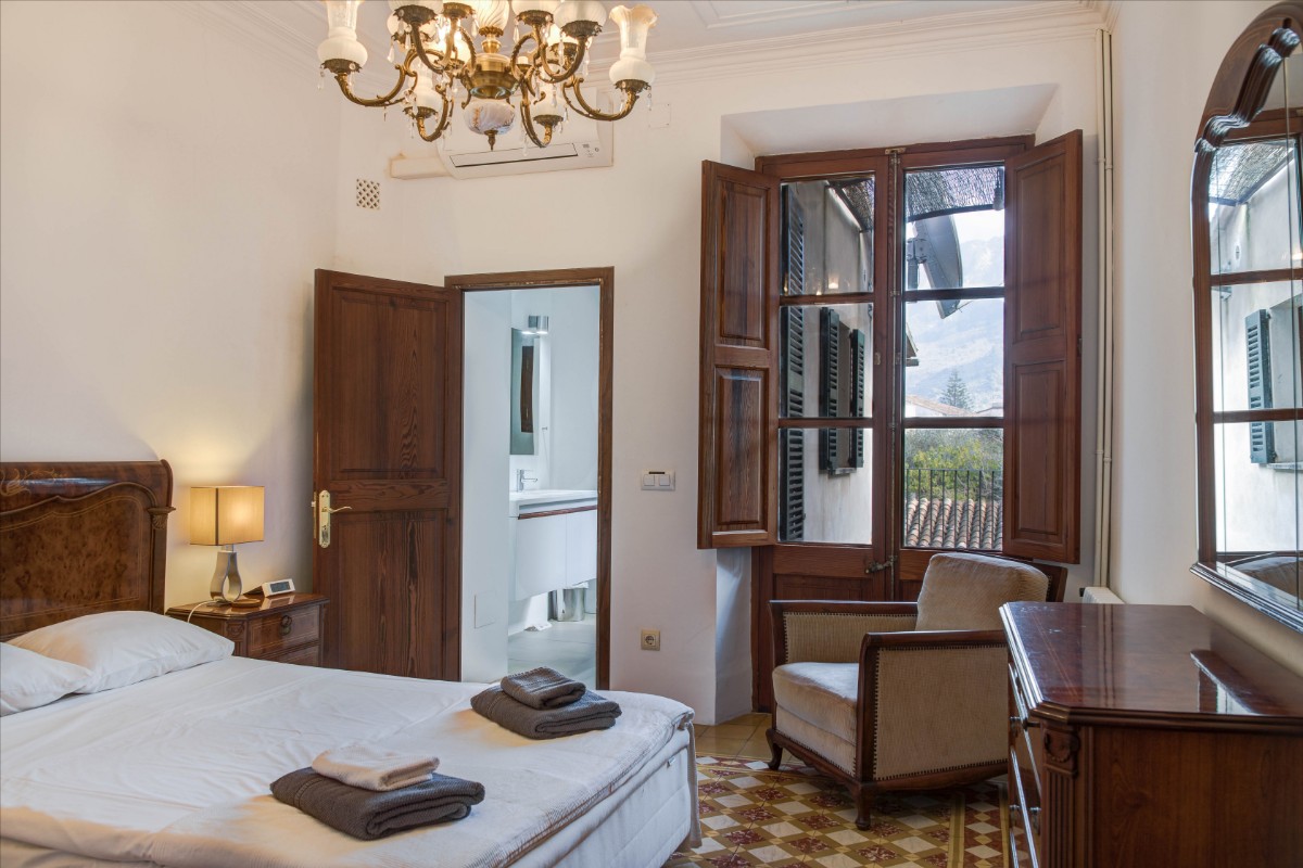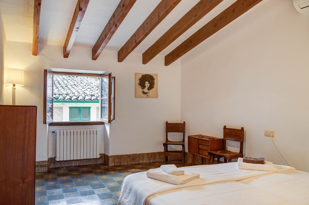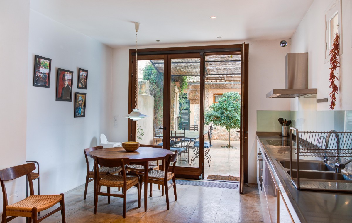 Con una ubicación céntrica en la Plaza de Sóller, en una pequeña calle lateral, detrás de una fachada angosta de una casa de pueblo mallorquina, se encuentra este elegante edificio residencial de época. El hall de entrada atmosférico conduce directamente a la sala de estar y cocina moderna con acceso a la zona de jardín con piscina. Aquí, un área de comedor bajo protección solar y muchas tumbonas alrededor de la piscina lo invita a quedarse y disfrutar de unas vacaciones juntos. En la zona de la piscina hay una sala de ducha con inodoro. En la casa están en el piso medio el dormitorio principal con cama doble y baño en suite y terraza; así como otro dormitorio con dos camas individuales y baño en suite. En la planta superior hay dos dormitorios más, ambos con camas individuales, y un baño que comparten los dos dormitorios de este piso. El área de entrada es ideal para aparcar bicicletas y, por lo tanto, también es el lugar ideal para los huéspedes deportivos. Un automóvil no es necesario en esta ubicación.