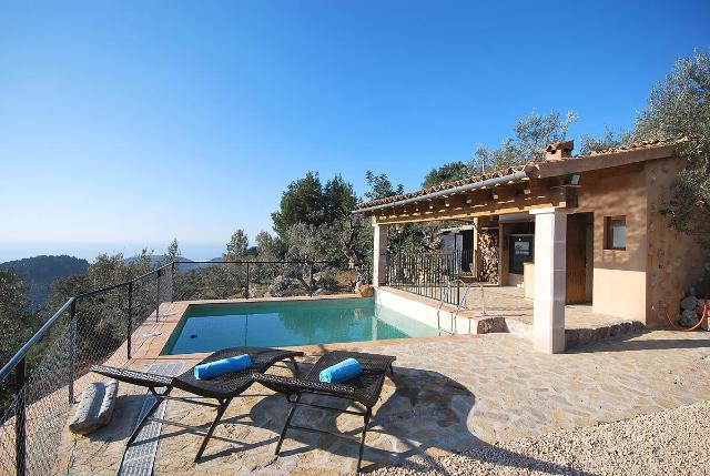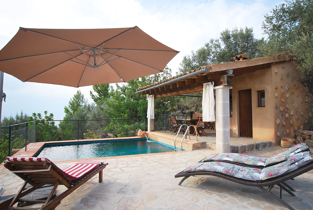 Este acogedor olivar se sitúa en la zona denominada Ses Moncades en las montañas de Sóller. Desde la carretera principal entre Pollensa/Lluc hasta la casita se tarda 15 minutos en coche. La casita tiene dos dormitorios, uno doble con aire acondicionado y otro individual con unas literas. Tiene una cocina abierta al salón equipado con TV, DVD, aire acondicionado y chimenea. Baño con ducha y coladuría con lavadora y secadora. La soleada terraza dispone de una cocina de verano con barbacoa y otro baño. Además tiene una pequeña piscina ideal para refrescarse. Se recomienda un pequeño coche para acceder a la casa. Puede alquilarse para temporada máximo 11 meses, consumos a parte.