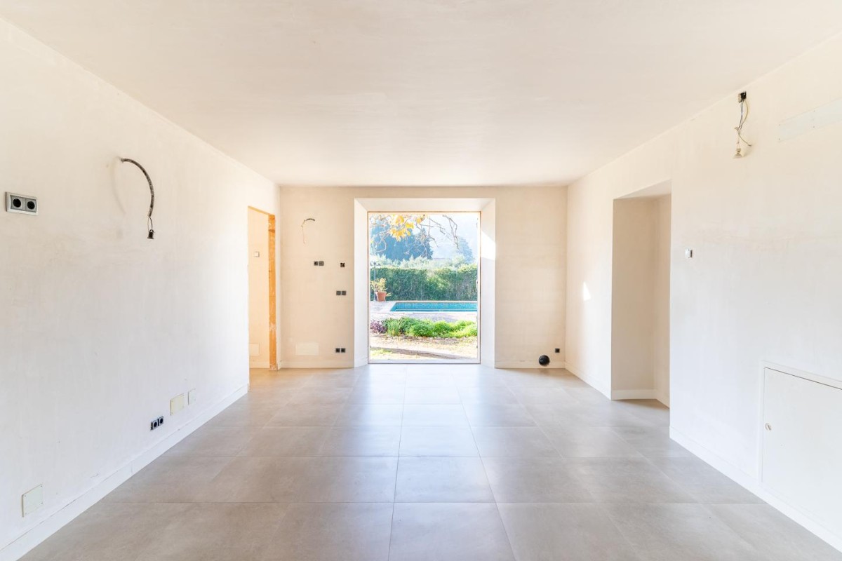 Dividida en dos plantas más un sótano, la vivienda ofrece 4 habitaciones, 3 baños, una práctica lavandería y una gran terraza con vistas espectaculares. El exterior no se queda atrás: una piscina rodeada de un hermoso jardín y un amplio terreno con olivos y naranjos perfecto para disfrutar del aire libre. El terreno dispone de sistema de riego automático y tiene agua tanto de pozo, ya que la casa dispone de 2 pozos como de agua de Sa font de sa Olla de la que dispone de una hora.