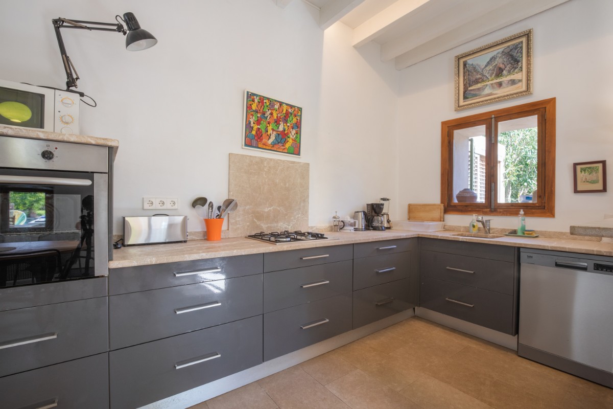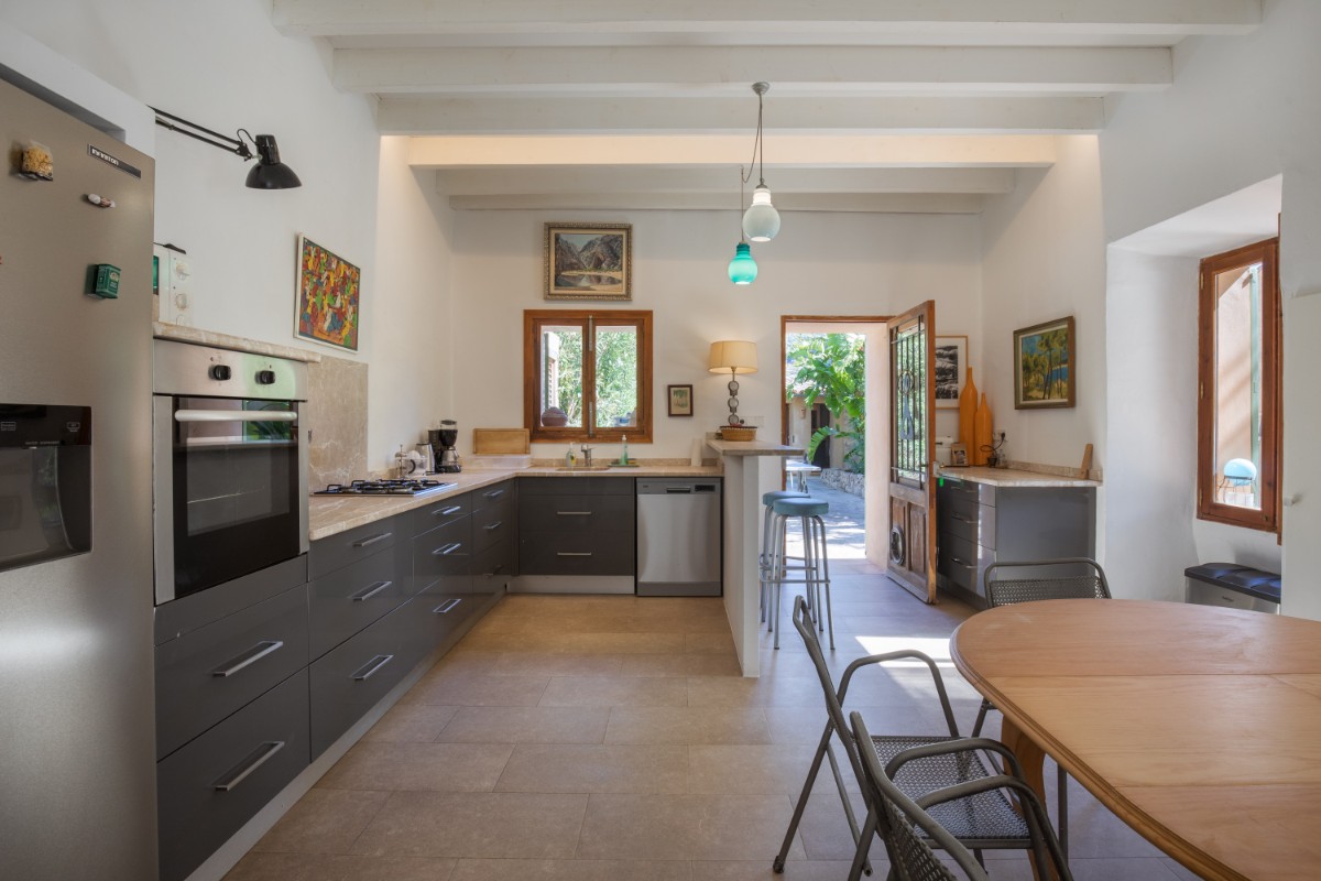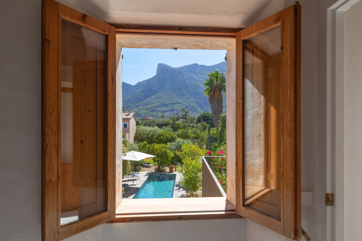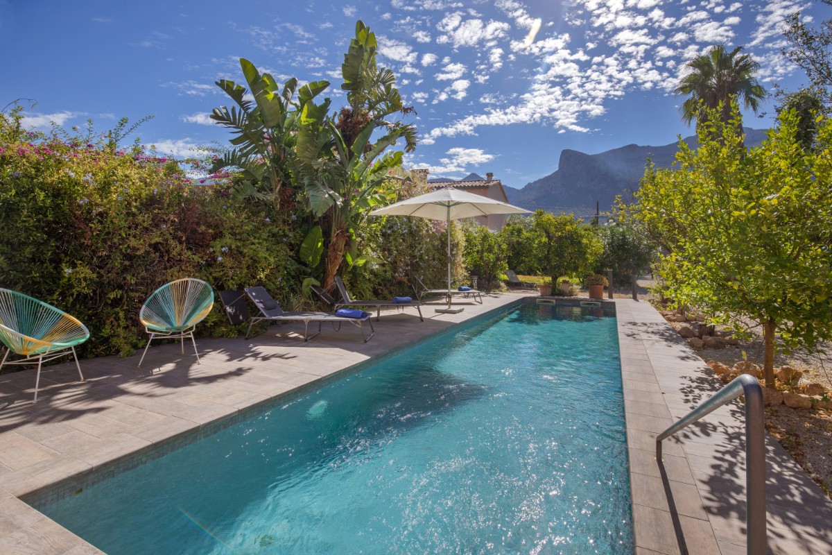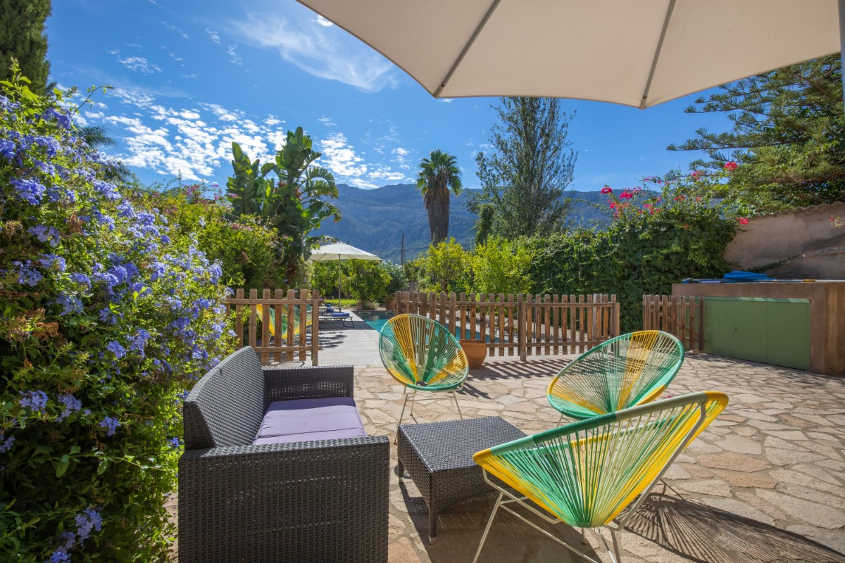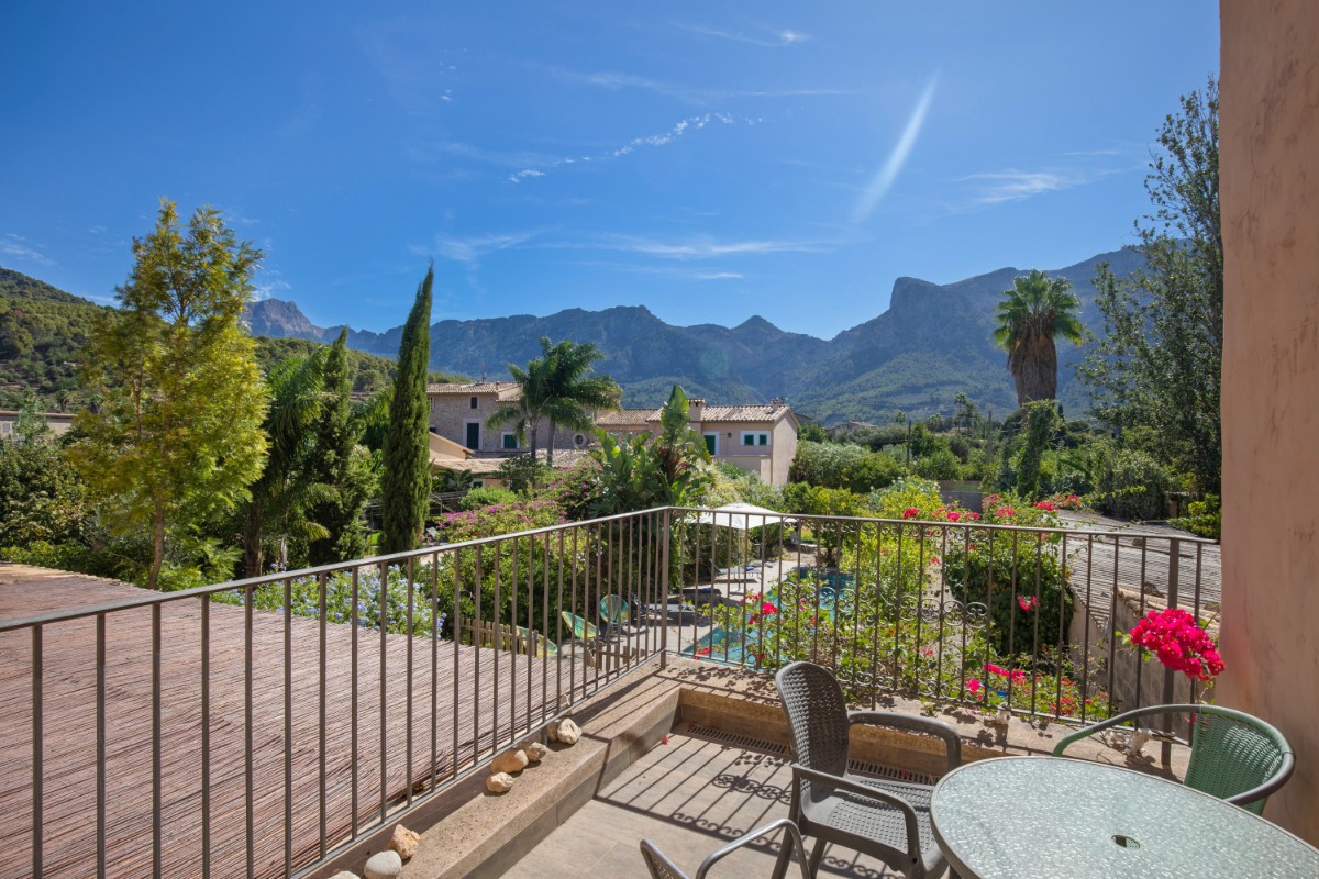 Situado en las tranquilas afueras de Sóller, esta casa de pueblo adosada de 1900 ofrece una combinación única de encanto histórico y comodidades modernas. Ubicada en un vecindario tranquilo con una excelente orientación solar, la propiedad cuenta con un jardín de tamaño considerable y piscina. Y aunque hay casas vecinas alrededor, el jardín evoca un oasis tranquilo donde uno puede relajarse por completo. La casa principal, de tres niveles, desprende un estilo auténtico de casa de pueblo. En la planta baja se encuentra una sala de estar espaciosa con cocina abierta, conectada de forma perfecta al comedor exterior. También en la planta baja hay una pequeña sala de oficina. Los dos pisos superiores de la casa tienen 4 dormitorios en suite, así como una pequeña terraza con vistas a las montañas. Cabe destacar su licencia de alquiler, que promete una oportunidad de inversión fluida y sin complicaciones. Una pequeña casa rural es la zona perfecta para almacenamiento y lavadora. Con una cómoda zona de estacionamiento y una piscina para disfrutar del suave clima mediterráneo, esta propiedad encarna un equilibrio perfecto entre tradición y confort, convirtiéndola en una opción excepcional. No hace falta coche, ya que se puede caminar hasta la plaza y la parada del tranvía está a pocos metros, al igual que los supermercados.
