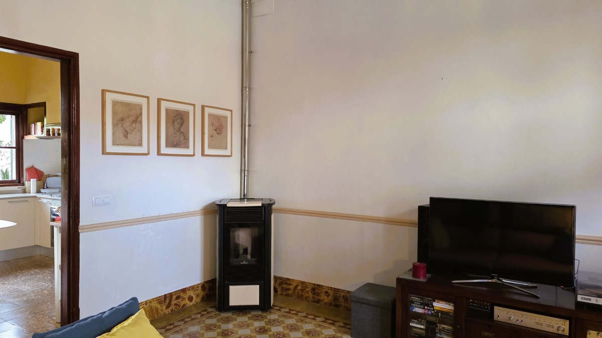 El amplio salón principal, con grandes ventanales, se llena de luz natural y ofrece un ambiente cálido y acogedor gracias a su estufa de pellet. En el hall de entrada, una encantadora estufa de leña refuerza el carácter tradicional de la vivienda, convirtiéndola en un hogar perfecto para disfrutar durante todo el año. La gran cocina independiente, espaciosa y funcional, cuenta con salida directa a una terraza y conexión con el patio, facilitando una cómoda vida interior–exterior, ideal para reuniones familiares, comidas al aire libre o largas veladas de verano.