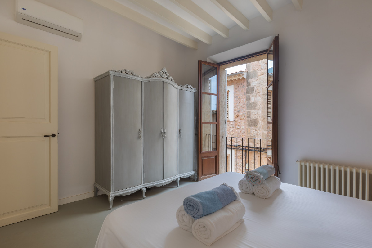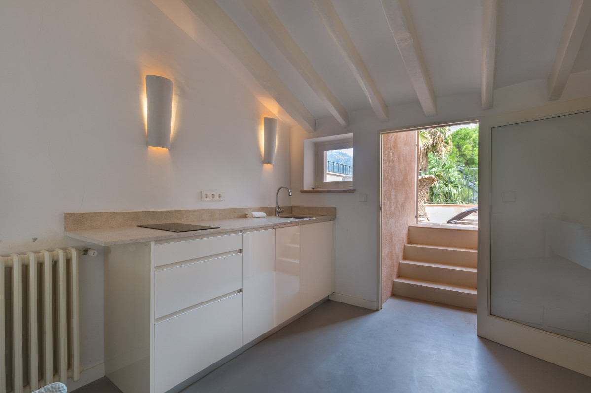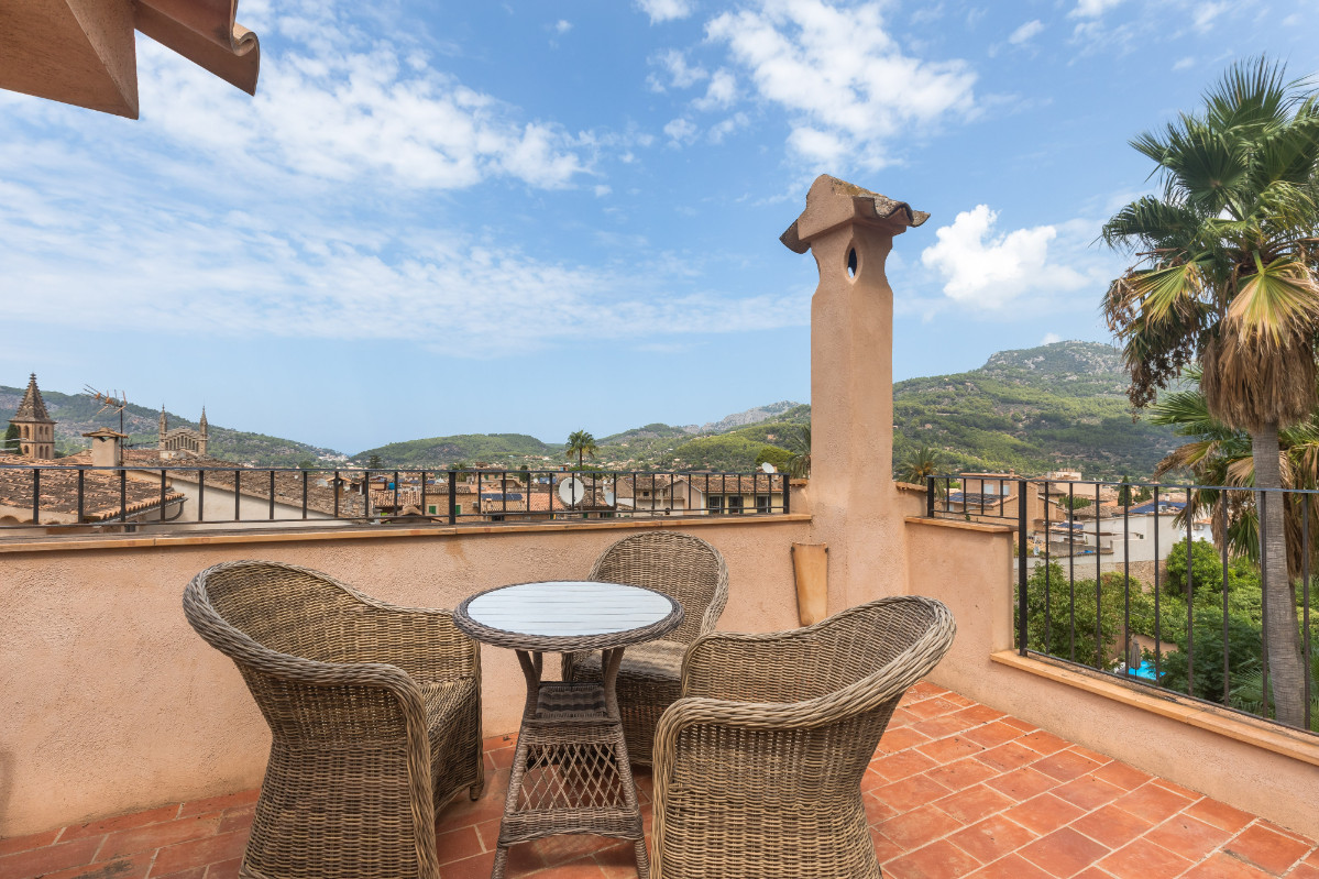 Esta luminosa y céntrica casa de pueblo fue renovada totalmente hace pocos años. Situada en una tranquila calle a apenas tres minutos a pie de la plaza de Sóller, la casa ofrece dos dormitorios dobles más un estudio en la parte superior con zona de cocina y acceso a la piscina. La propiedad dispone de calefacción central de gasoil y también tiene A/C frío calor. En su entrada tiene una bonita y agradable sala de estar que dá a la cocina. En las tres plantas superiores ofrece dos dormitorios dobles con armarios empotrados y un enorme baño totalmente nuevo. En la planta superior tiene una sala estudio con sofá cama, con kitchenette y acceso a la terraza, donde disfrutar de unas espectaculares vistas a la sierra que envuelve todo el pueblo de Sóller. Excelente oportunidad de adquirir una tradicional casa de pueblo ya totalmente reformada.