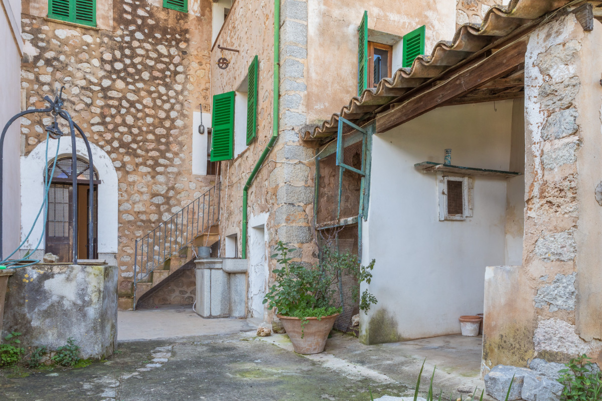 Esta gran casa de pueblo está situado en el centro de Sóller, a unos 5 minutos a pie de la plaza del pueblo. En tres plantas hay salón-comedor, cocina, cuatro dormitorios y un baño. Detrás de la casa hay una terraza. Detrás, separado de la casa por un estrecho camino de entrada, hay un gran jardín con aparcamiento para varios vehículos.