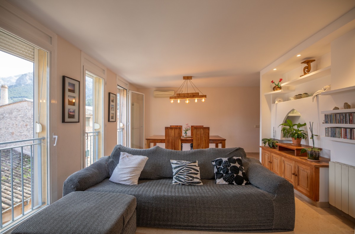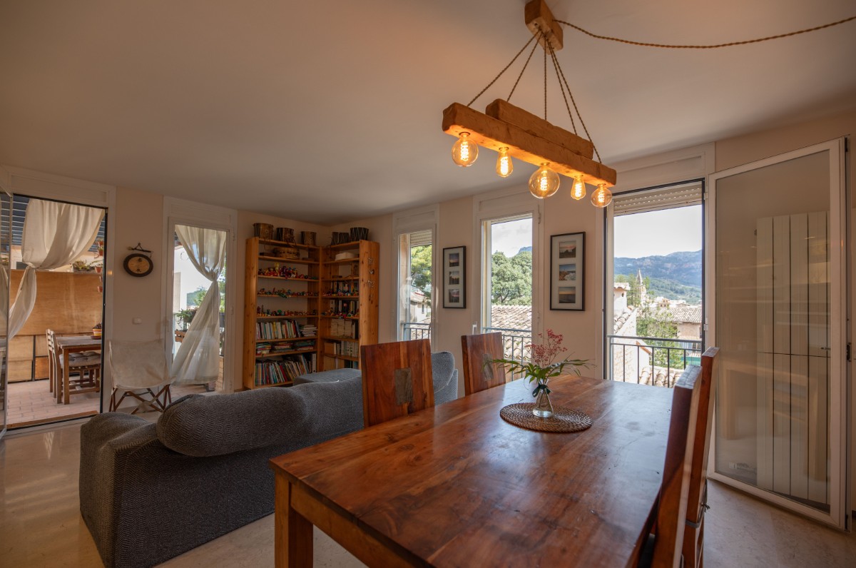 Este excepcional apartamento situado en un tranquilo edificio de apartamentos con encanto cuenta con características de lujo, tales como acceso en ascensor y la comodidad de aparcamiento en el garaje (mas dos trasteros), haciendo su vida diaria una brisa. A un corto paseo de la animada plaza de Sóller y de varias tiendas y restaurantes, te encantará explorar el valle de Sóller. Con 3 dormitorios y 2 baños, este luminoso apartamento también dispone de una terraza cubierta con vistas al Puig Major. La propiedad está bien conservada, lo que garantiza que pueda mudarse y empezar a vivir su mejor vida sin preocupaciones, mientras forma parte de una fantástica comunidad que ofrece un enorme jardín exuberante, perfecto para empaparse del sol mediterráneo, piscina comunitaria y pista de tenis para un sinfín de opciones de entretenimiento. ¡No te pierdas esta oportunidad de hacer de esta propiedad tu propio trozo de paraíso en Sóller! Esto es más que una propiedad en venta; es el comienzo de un nuevo capítulo lleno de relajación y disfrute.