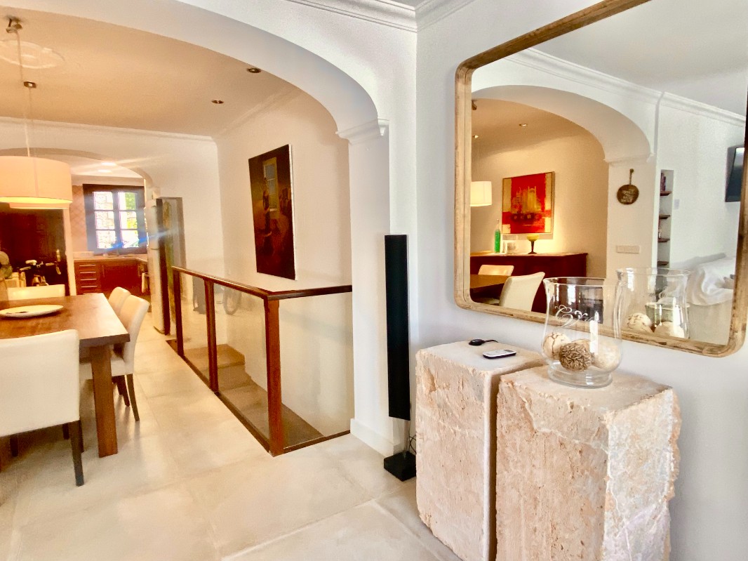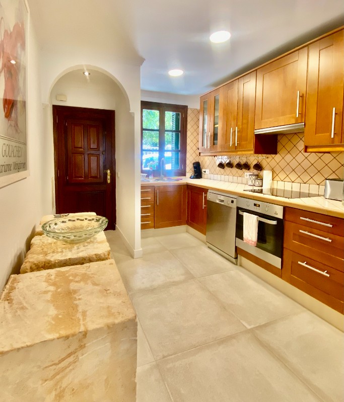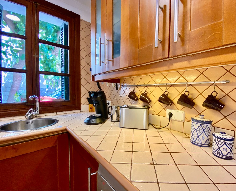 El piso adosado con aire acondicionado está situado en una tranquila zona residencial en el centro de Sóller, en la calle Fortuny. El jardín privado con piscina (6x2,5m) refrescante y cocina exterior adicional es para su uso privado.