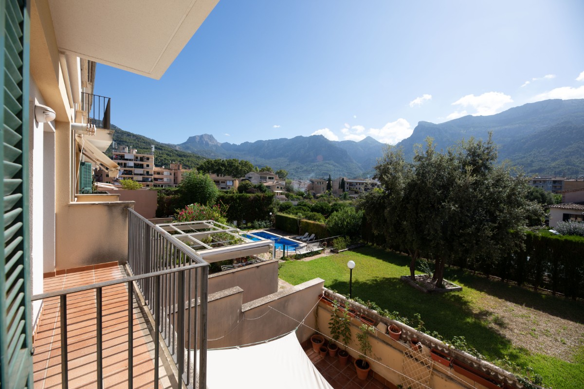 Situado en la primera planta, este luminoso y soleado apartamento ofrece una estancia acogedora con unas vistas impecables a la montaña. La propiedad cuenta con acceso a un jardín y una piscina comunitarios, ideales para relajarse y divertirse. Con la comodidad de una plaza de garaje y un trastero, esta residencia garantiza que todas sus necesidades estén cubiertas sin esfuerzo. Situado cerca de tiendas, transporte público y un centro deportivo, el apartamento ofrece una comodidad sin igual. Cabe destacar que se encuentra a 10 minutos a pie de la encantadora plaza de Sóller, mientras que la playa y el Puerto de Sóller están a solo 3 km, lo que garantiza una tranquila escapada a la costa. Con fácil acceso desde Palma, a solo 30 minutos en coche, este apartamento cuenta con una cocina abierta, sala de estar con acceso a un balcón, un dormitorio y un baño, creando un espacio confortable que satisface las necesidades de la vida moderna.